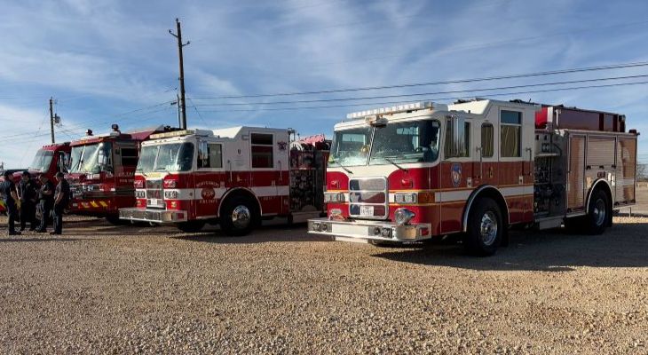 Dozens of first responders from across the state are utilizing AEP Texas property as severe winds threaten the area and create higher chances of wildfires. From brush trucks to ambulances, roughly 20 emergency resources are stationed at the AEP Texas Meter Services as a precautionary measure.